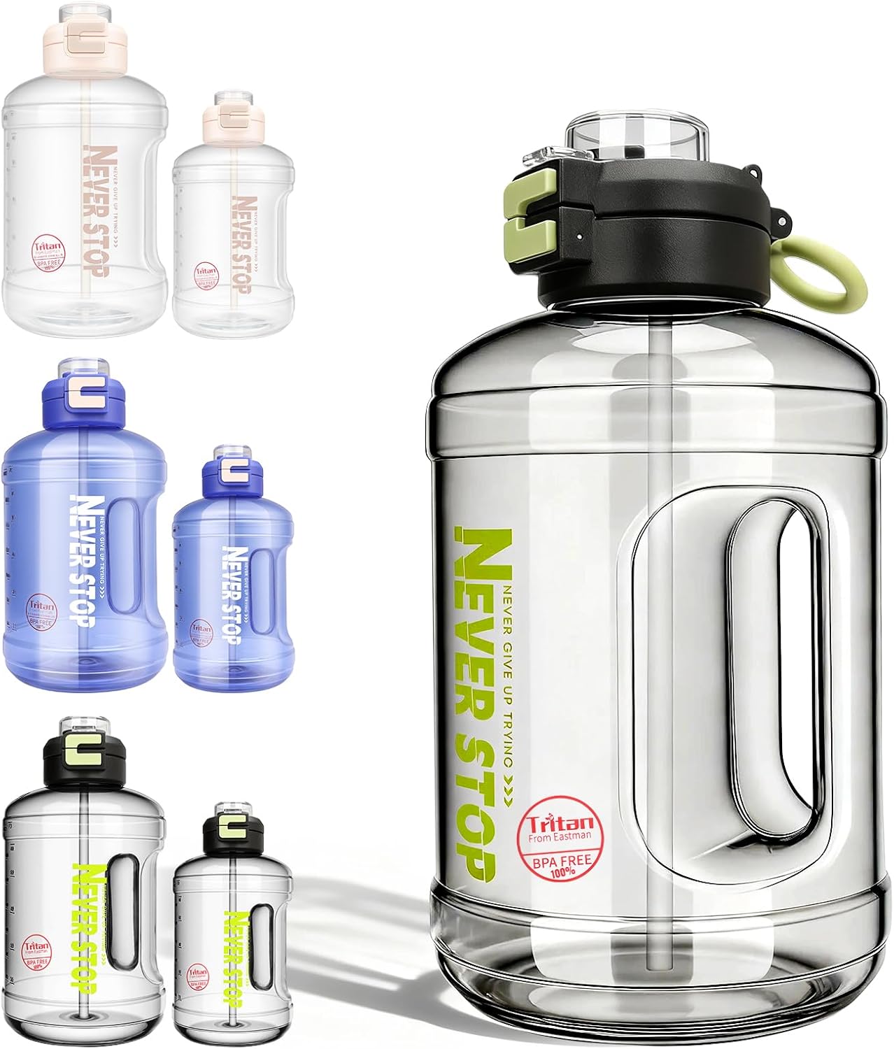 Introducing the 54oz Water Bottle, a perfect companion for those who lead an active lifestyle. This large gallon water jug is designed with a robust