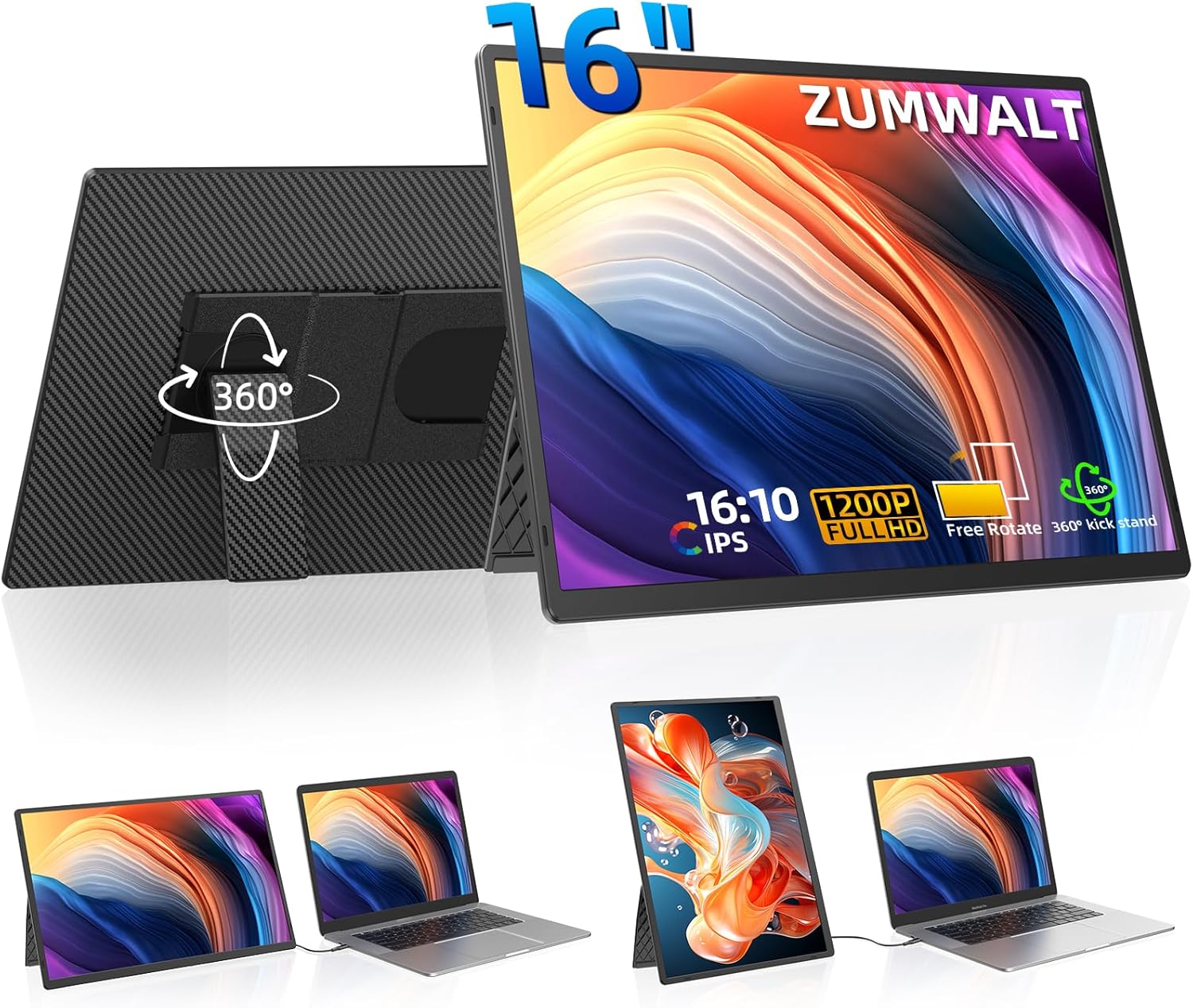 Experience the ultimate in productivity and entertainment with our Portable Monitor, a 16-inch 1200P FHD laptop screen extender designed to elevate your computing experience. This
