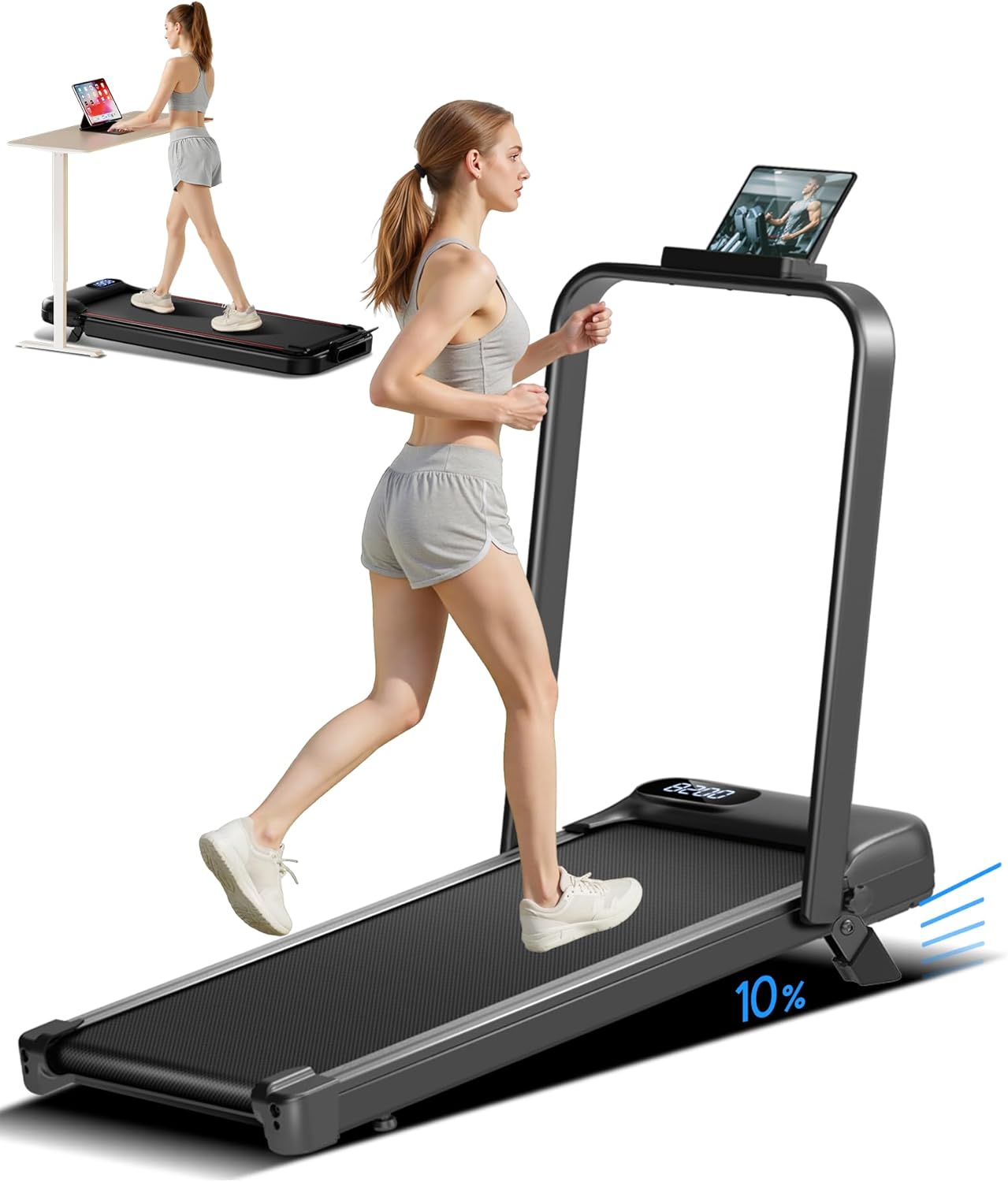 Experience the ultimate in home fitness with our 14% Incline Walking Pad Treadmill, designed to elevate your workout routine without sacrificing space. This compact, 4-in-1