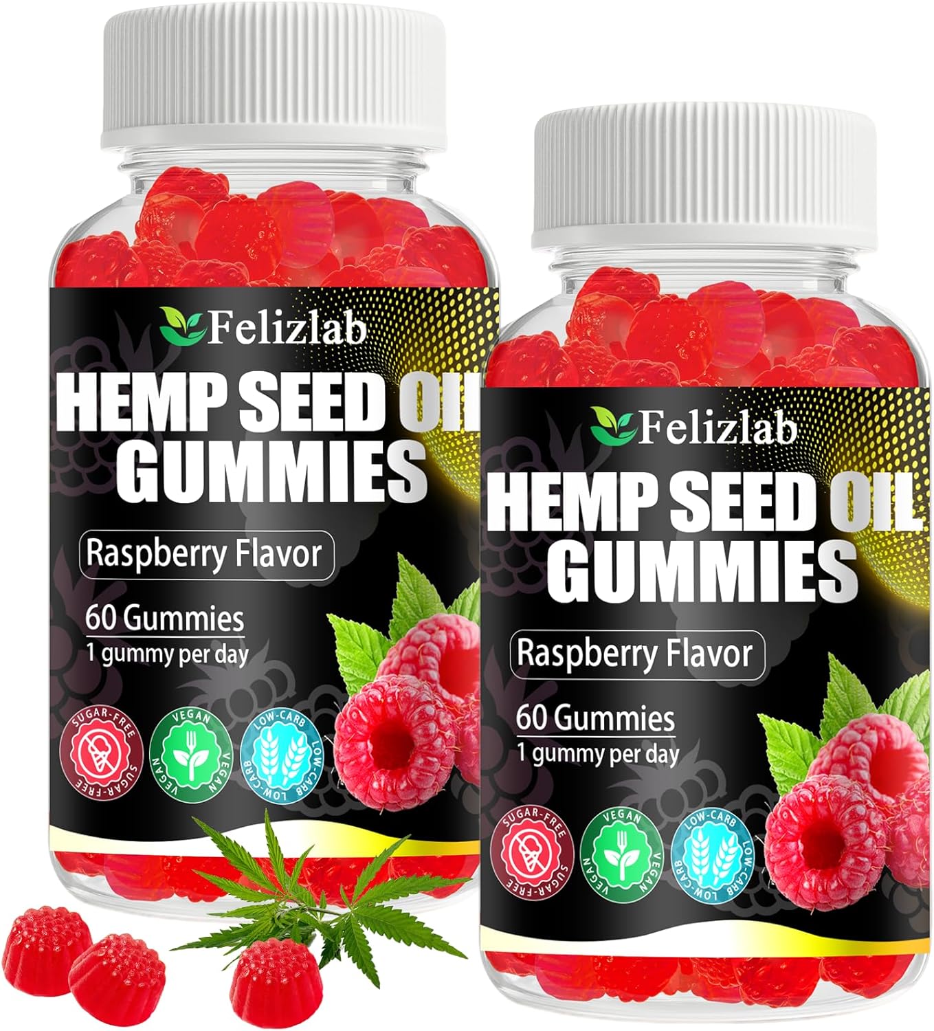 Experience the soothing power of nature with our Hemp Gummies for Sleep, Pain, and Anxiety. Each bottle contains 120 delicious raspberry-shaped gummies infused with premium