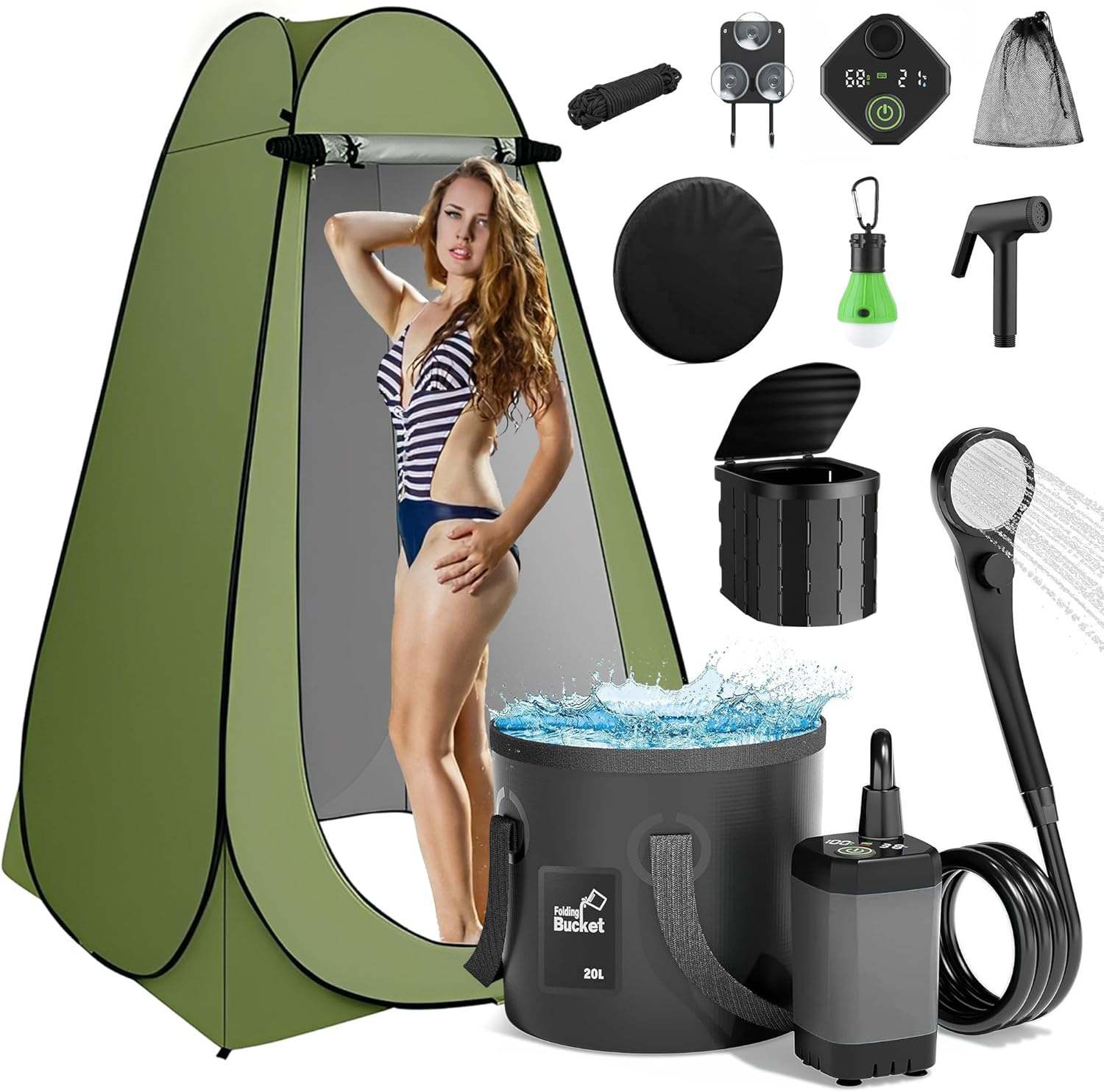 Experience the ultimate convenience in outdoor hygiene with our Portable Camping Shower and Pop Up Privacy Tent Kit. This all-in-one solution is designed for adventurers